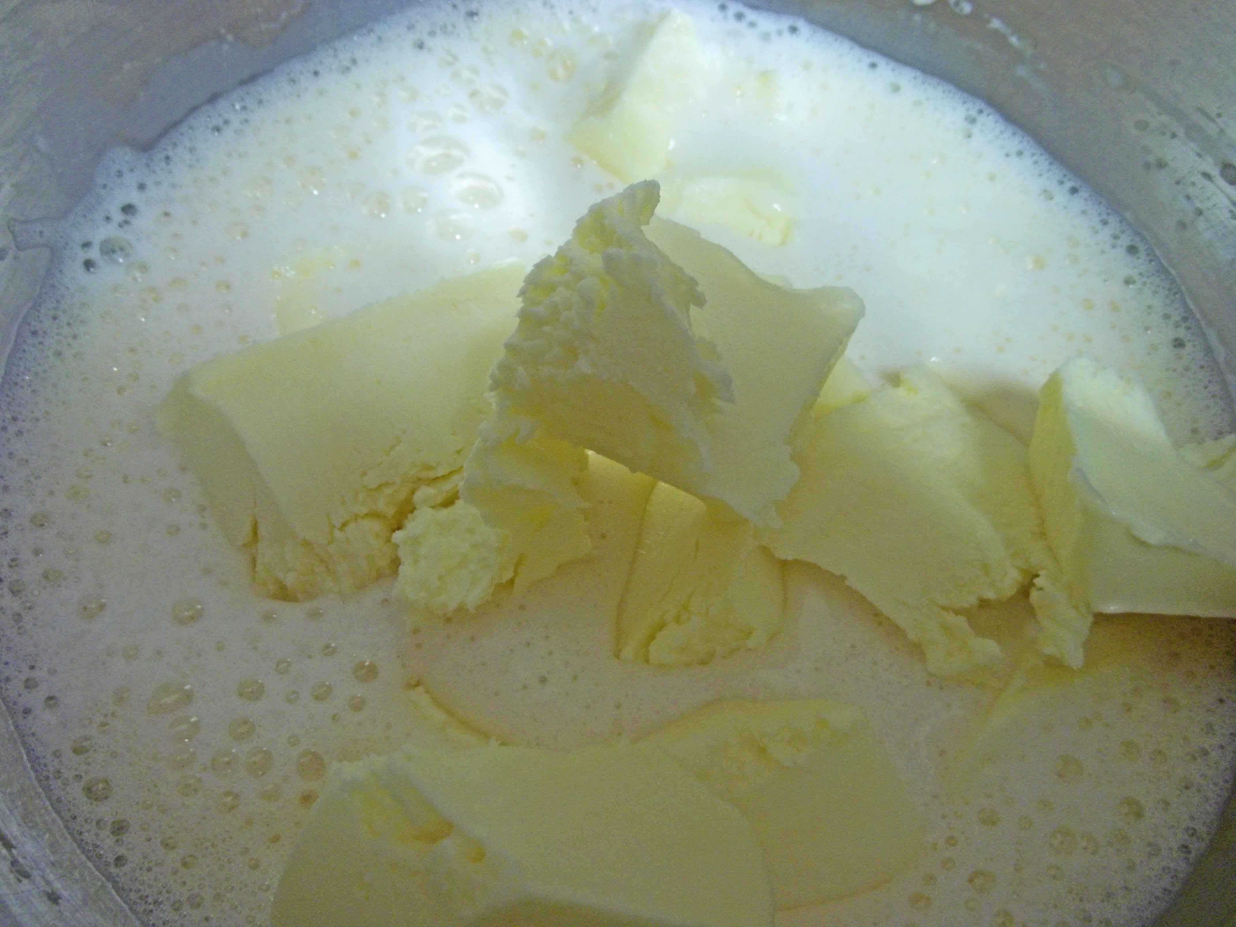 100_8486-(2)100_8492-(2)~Blend in 3/4 cup Butter + 1 cup Cream + 1 tsp Vanilla