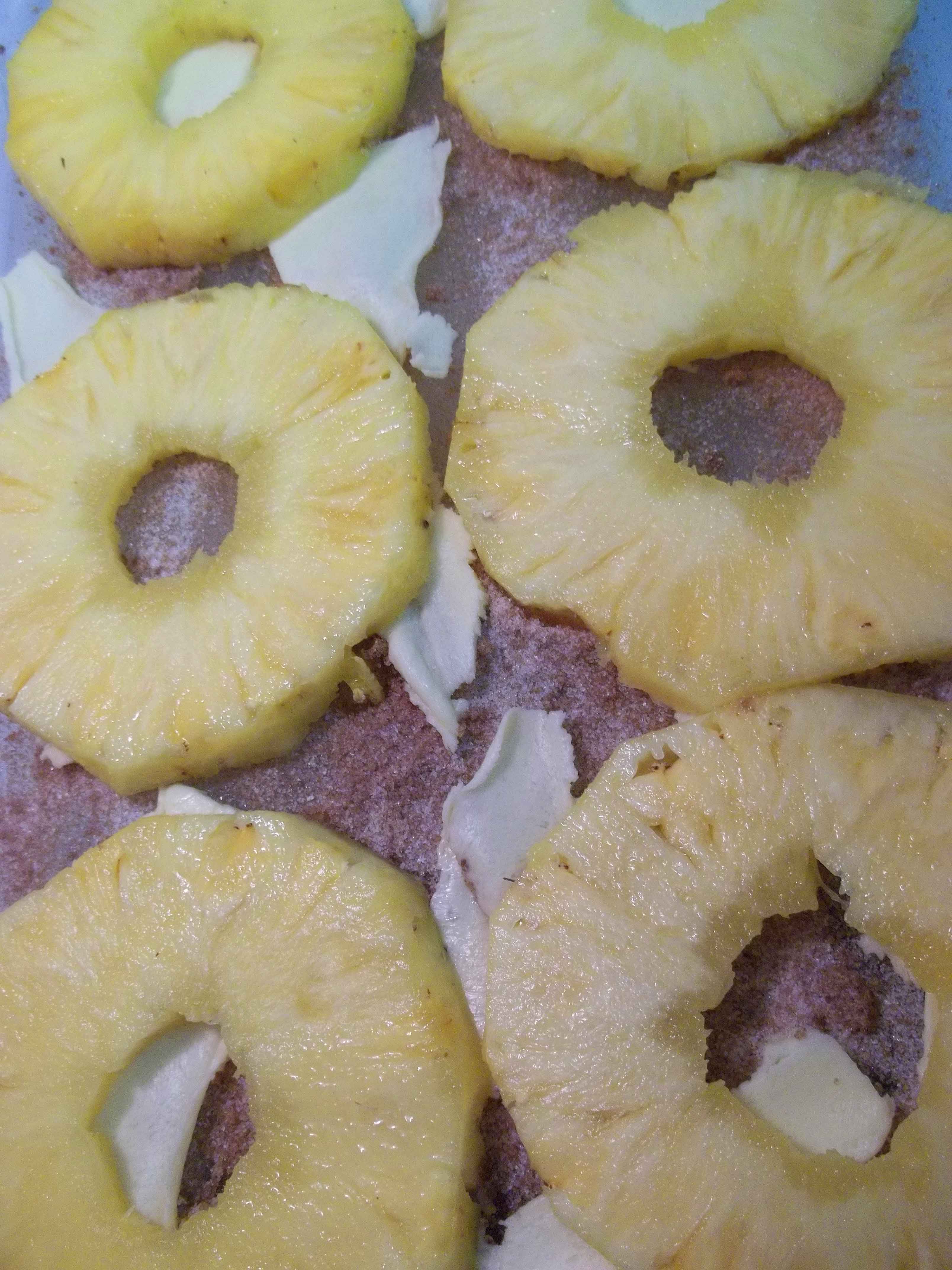 Lay Sliced Pineapple in Dish.